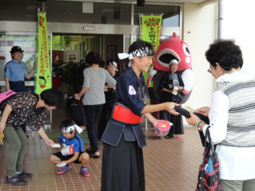 振り込め詐欺撲滅運動として会館入り口で利用者のみなさまに呼びかけを行いました。