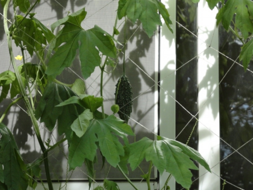 よく見ると小さなゴーヤの実が…